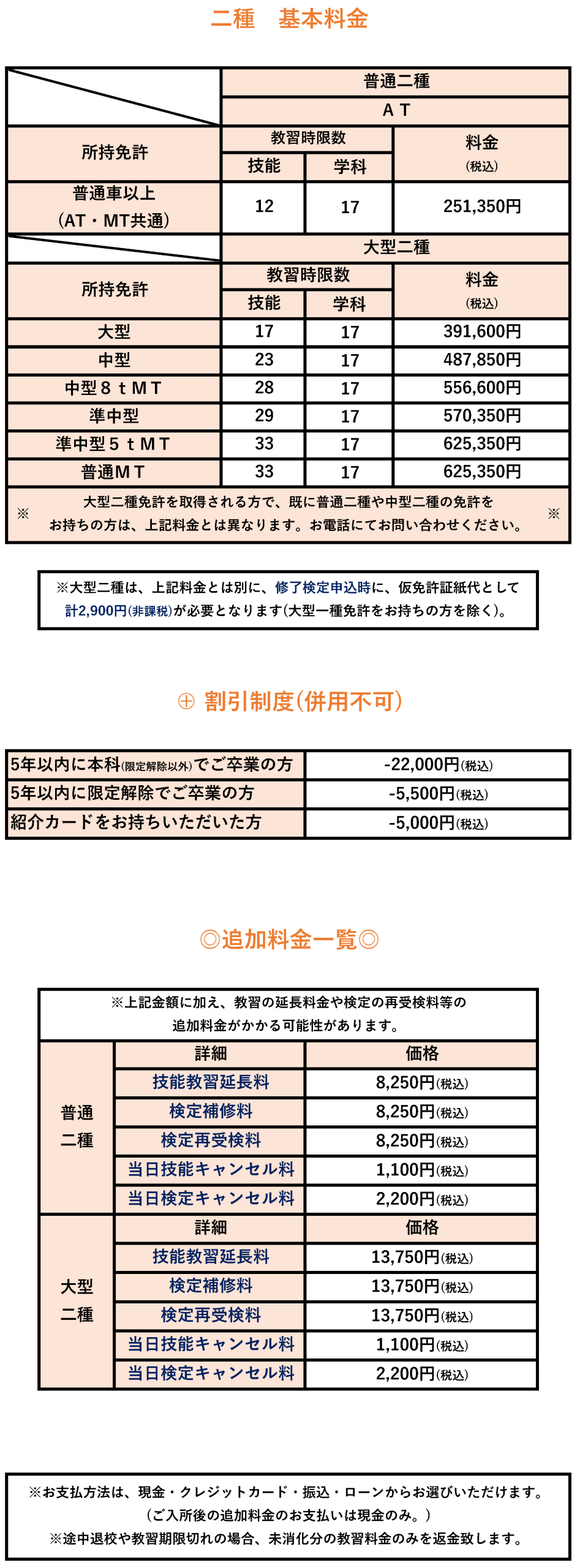 普通二種AT限定解除については、限定解除のページをご覧ください。